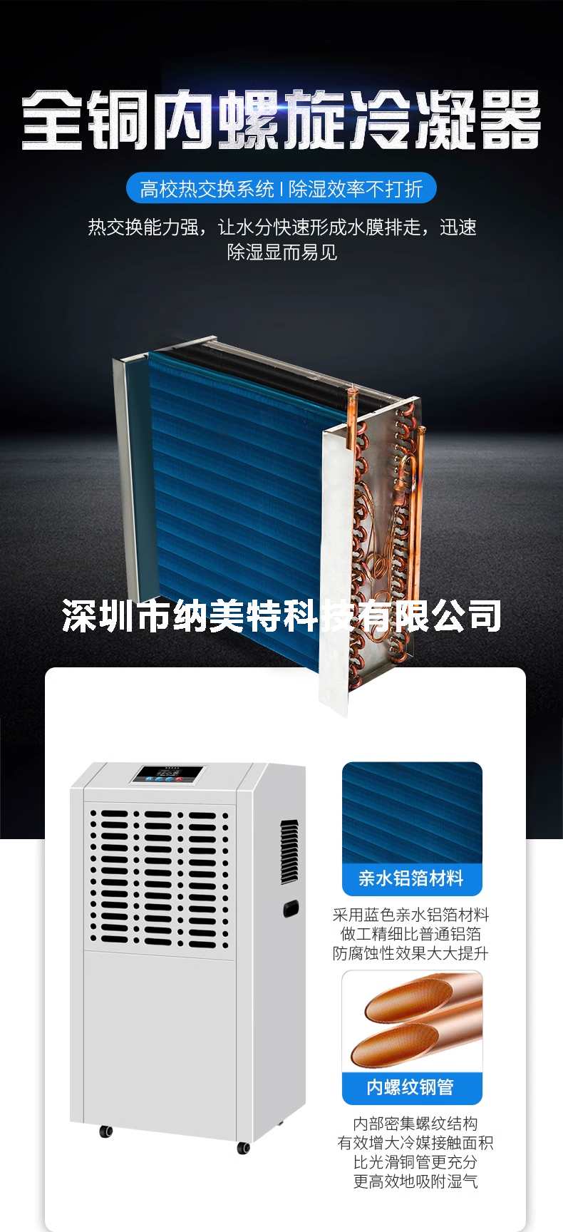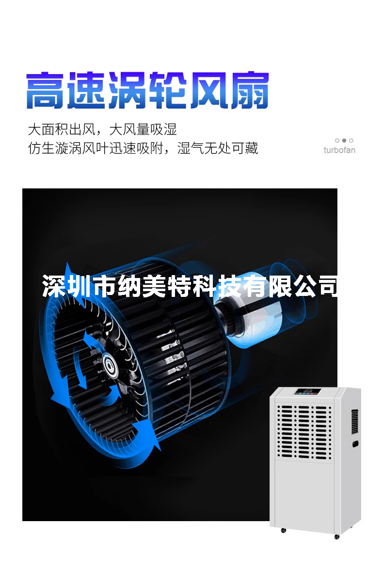 工业除湿机通过风机抽入潮湿空气,通过冰冻的蒸发器凝结成水,汇集容器内或经水管引流排走,干爽空气由出风口排出,湿度逐渐下降。