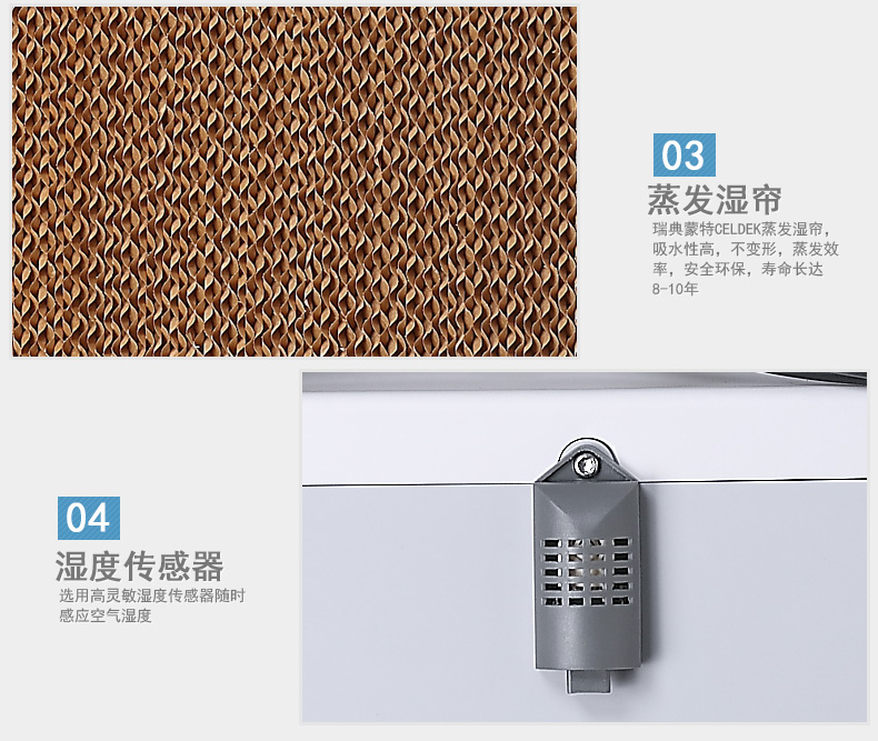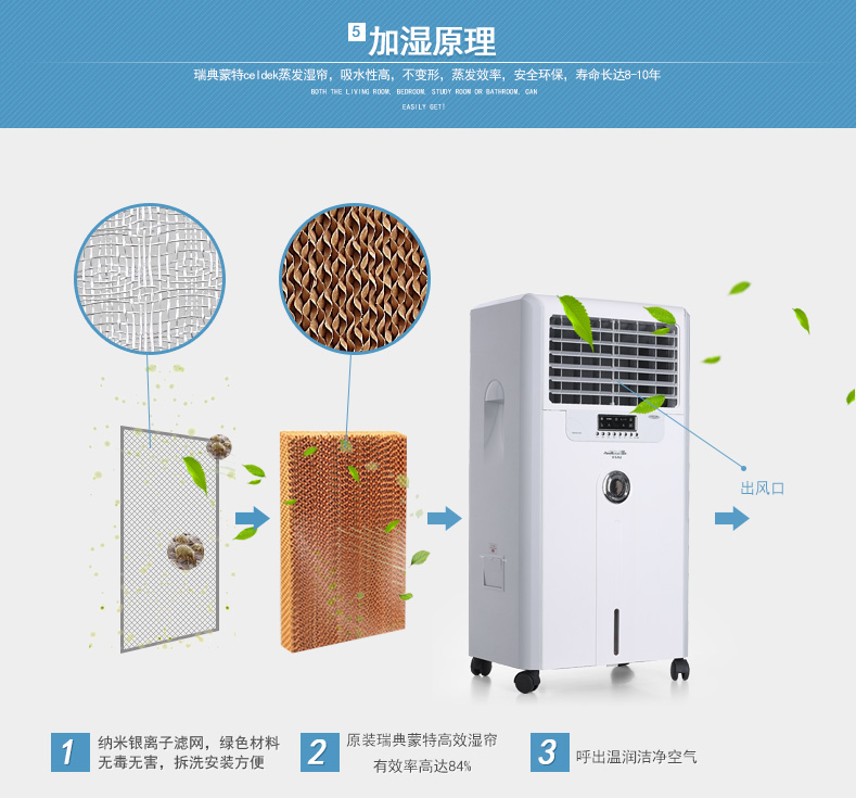 6、蒸发材料对空气具有净化作用,除去室内空气中的灰尘和溶于水的有害气体。