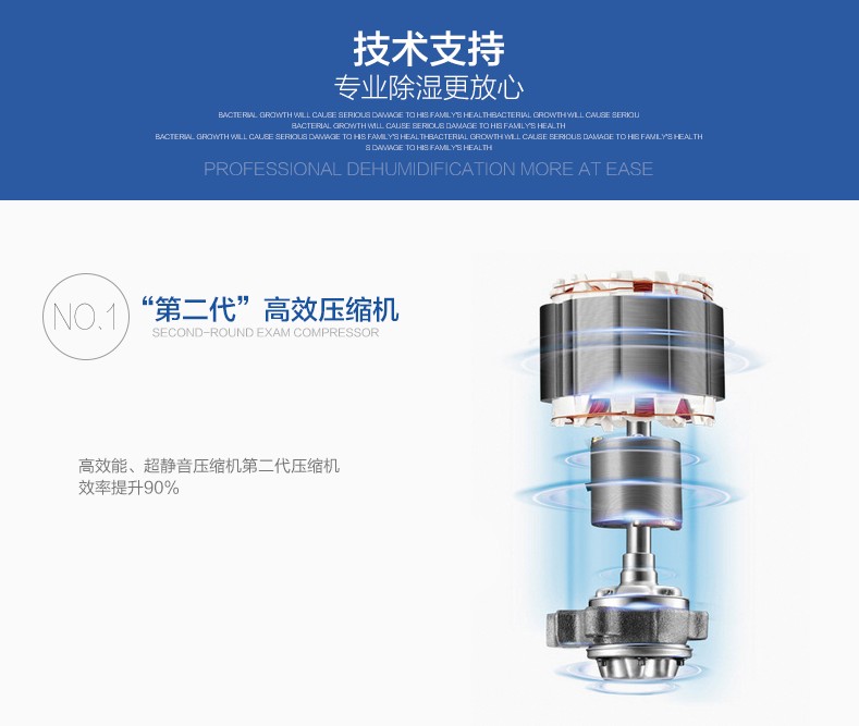 7、高效命除湿机,专用风扇马达,宁静,低噪音。
