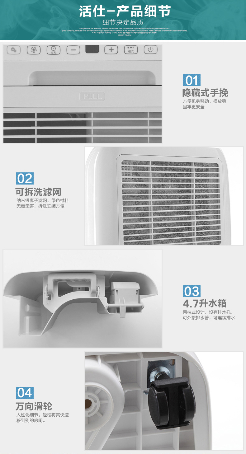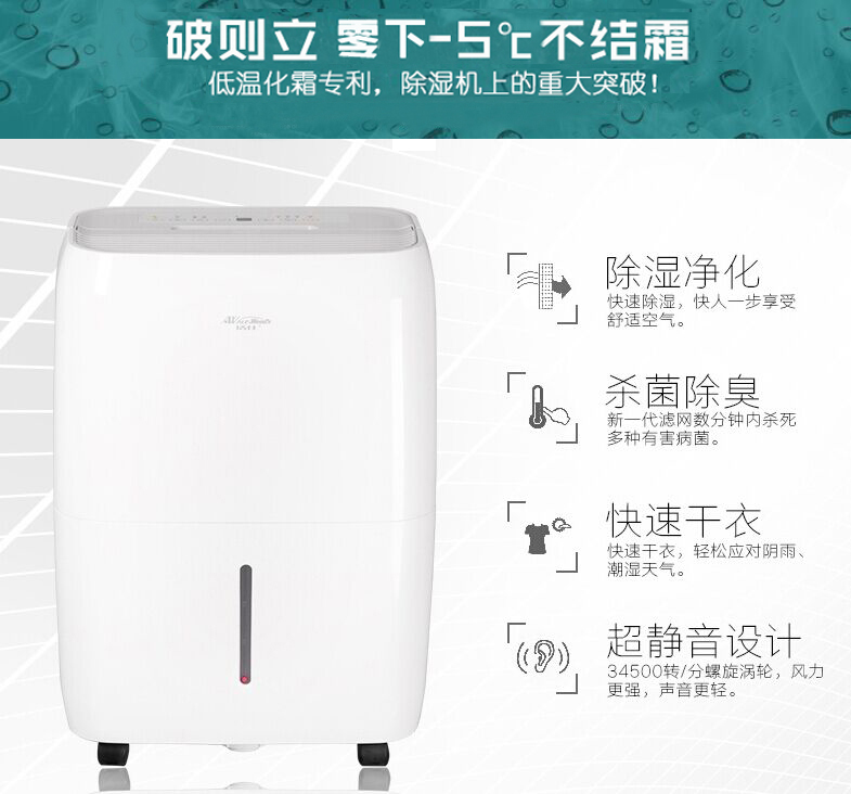 1、温度感应式智能除湿模式可探测室温,自动调节人体感觉舒适的湿度范围。