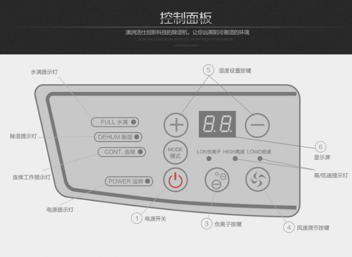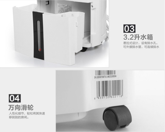 上吹式出风(双风速,可选择高速除湿或低速静音除湿) |