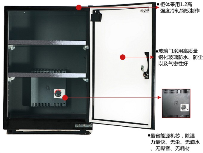 5、最省能源机芯,除湿速度快,无尘,无滴水,无噪音,无耗材。