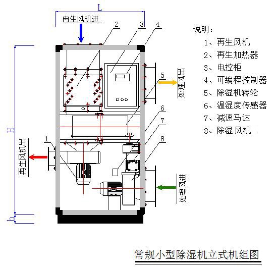 注:1、转轮表面风速:2~4m/S设计 过高风速将导致除湿效果失灵。