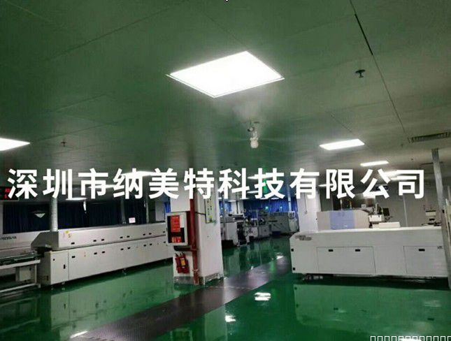由于湿度过低空间将产生一定的静电增加产品损坏率,所以需要安装加湿设备增加空气相对湿度,确保产品质量和生产工艺要求。因车间层高较矮,所以推荐使用纳美特气雾加湿系统进行空间加湿防静电,气雾加湿的雾滴颗粒极细易蒸发,适合低层高加湿场所.纳美特至诚至信的完美服务,百分百的用户满意。