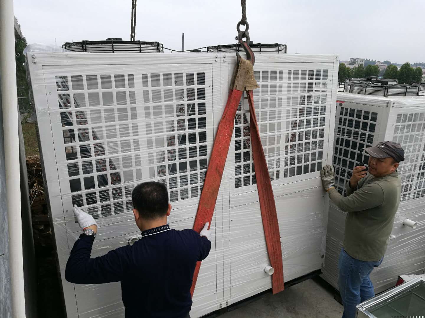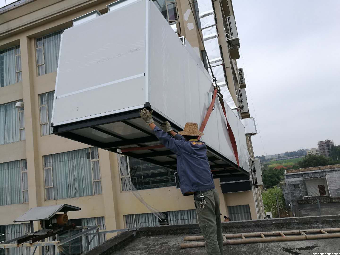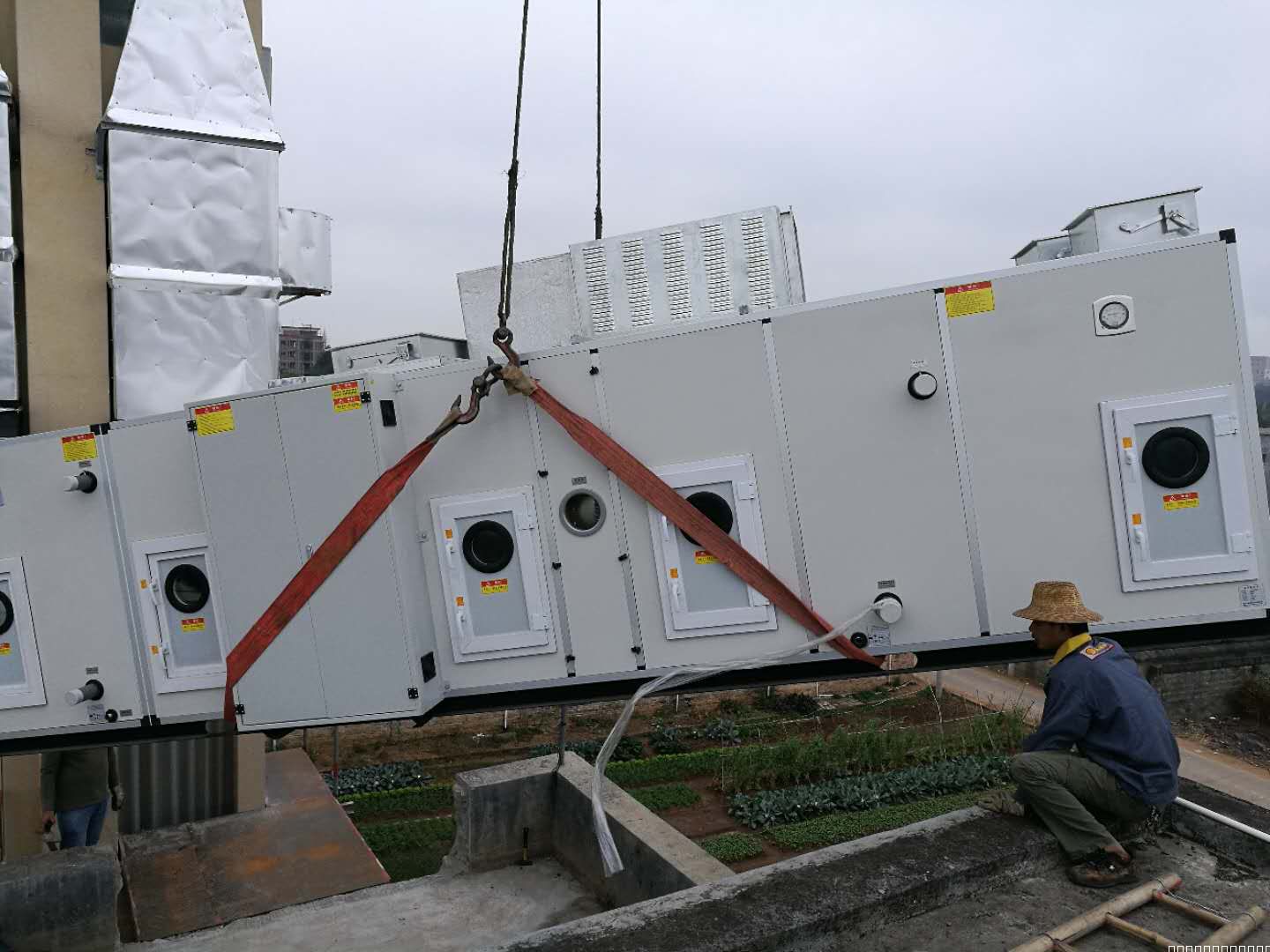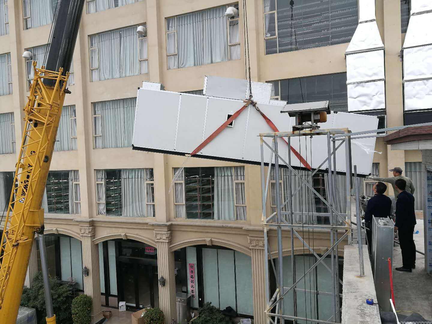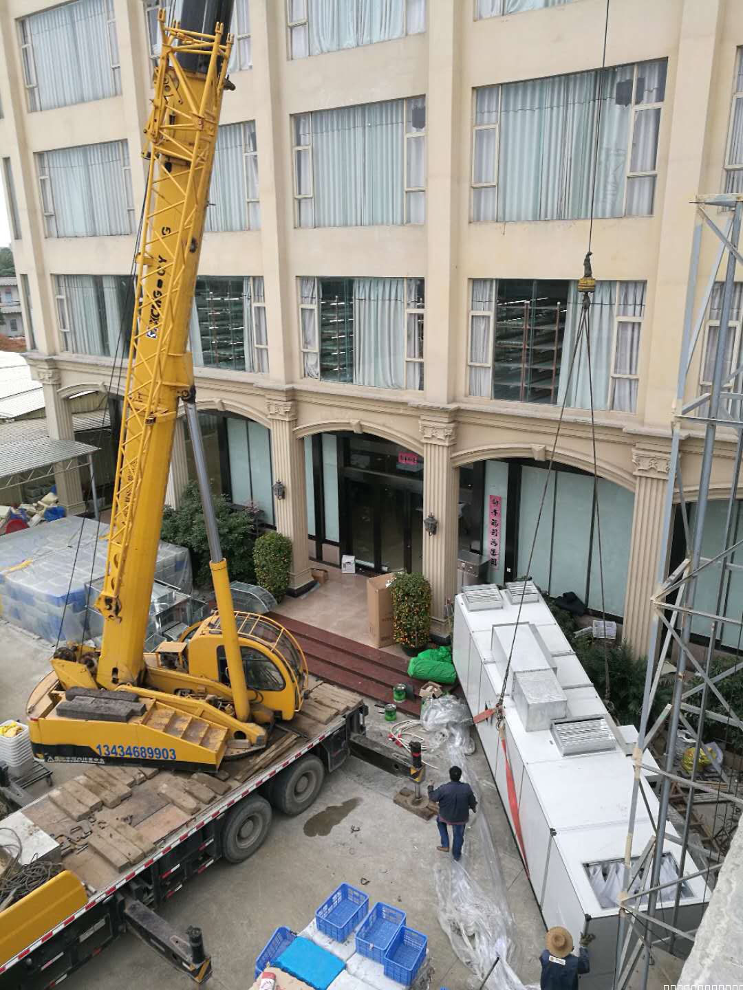 湛江项目转轮除湿机组制冷系统吊装定位进行中