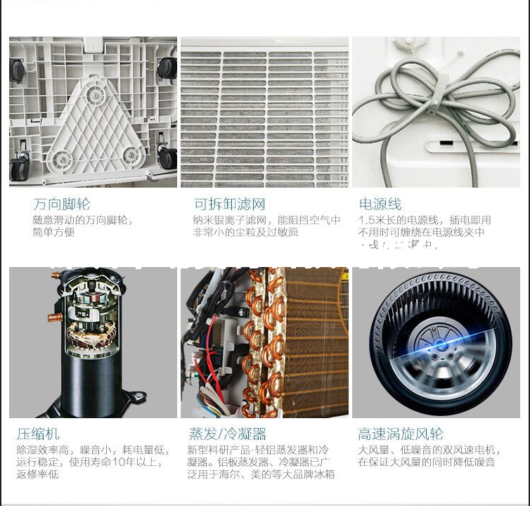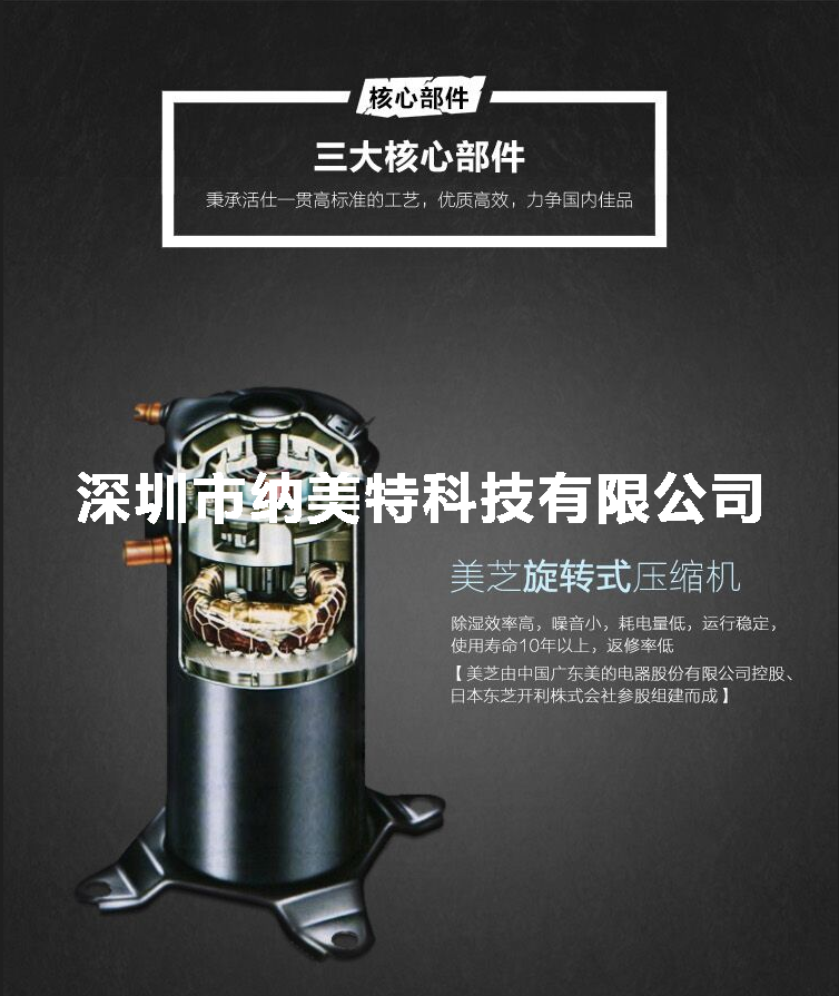 6、采用美芝高效旋转式压缩机,强力除湿